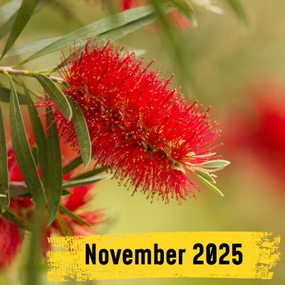 Hello and welcome to DECEMBER It's officially Summer - Birak; the first nations people's 'first summer' season - with warmer easterly winds (traditionally in the morning) and cooler sea breezes (in the afternoon). It was traditionally a time for mosaic burning to aid seed germination and to ease passage through the landscape. Many young animals are about and fledglings are leaving the nest. In our gardens, it's time to do the prep work for when serious summer temperatures arrive. It's also the lead up to Christmas! Such a busy time of year; work parties, family catch-ups, club wind-ups - there's always a lot to do. We hope you have a lovely month - regardless of the busy-ness; we're looking forward to a little break at Christmas after a busy Spring.